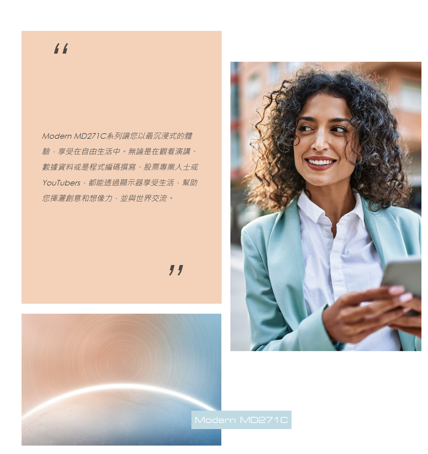 榮獲2021年紅點設計大獎 1500R曲率為您的工作和娛樂帶來最身臨其境的觀看體驗 德國萊因TÜV認證,可確保為用戶帶來最舒適的觀看體驗 防閃爍和減少藍光功能,可以讓你在工作中防止眼睛疲勞 獨家Display Kit軟體工具包 舒適的工作與更棒的觀看顯示器角度,能讓您全心投入於工作中 75 Hz更新率,提供更好的觀看體驗 多種輸入裝置(Type-C、HDMI),滿足不同裝置需求 支援VESA標準安裝 內建揚聲器,便於播放音頻文件